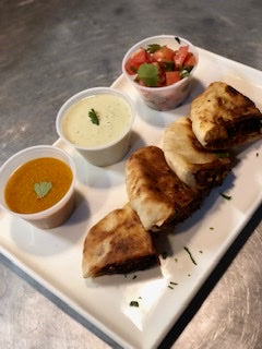 Roasted crispy pita filled with juicy impossible meat. Served with Jalapeño tomato salad tahini & amba