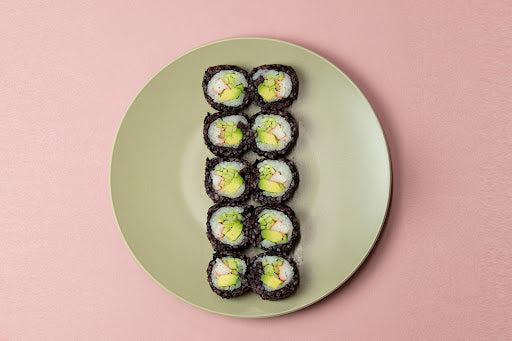 Natural Black Rice, imitation crab, Avocado and Cucumber