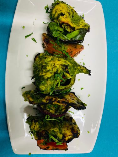 Chicken marinated in fresh mint, cardamom, and cilantro. Please allow 35 minutes for any grilled items.