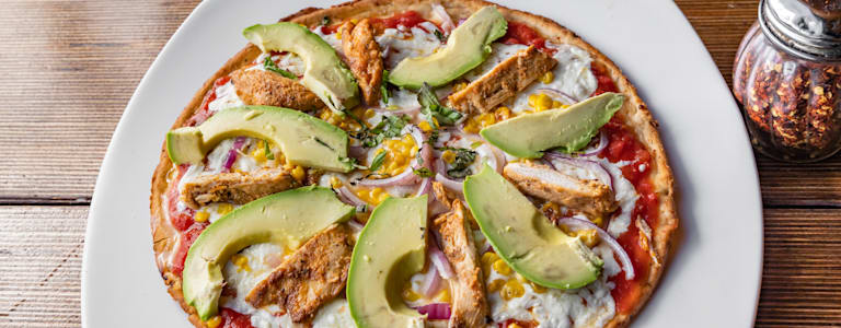 Chicken, mozzarella , chipotle sauce, onion, roasted corn, avocado. Our pizzas are handmade daily using the freshest ingredients to create our famous gluten-free crust.