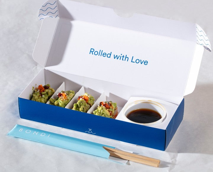 4 pieces Truffle Avocado topped with Sun Dried Tomato, Red Onion and Serrano Salsa + Crunchy Rice Pearls atop air fried crispy rice