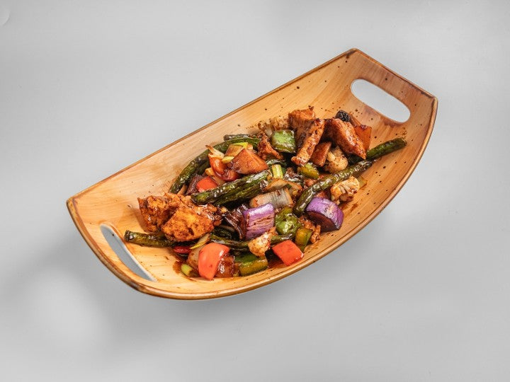 Literally meaning 3 cups (soy sauce, rice wine vinegar, and oyster sauce) wok stir fried with mixed vegetables (cauliflower, caulilini, AA, zucchini, eggplant, bean sprouts, potato, lotus root, king mushrooms, button mushrooms, and broccoli) and tofu tossed n a sweet and savory sauce.