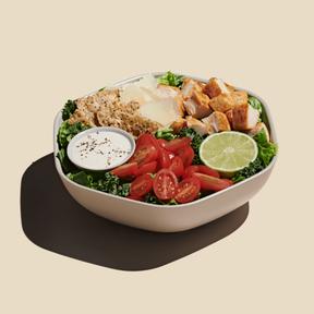 Chopped romaine, shredded kale, tomato, parmesan crisp, roasted chicken, shaved parmesan, caesar dressing, fresh lime squeeze