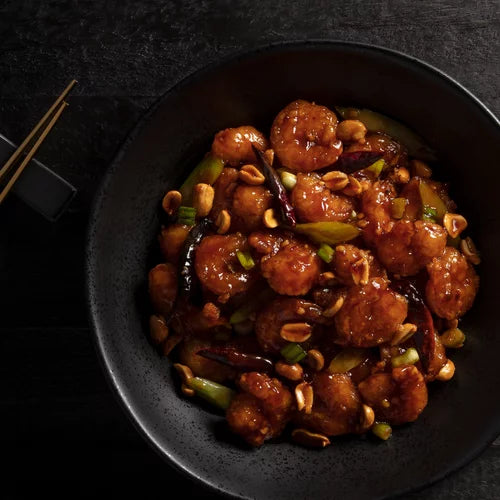 Spicy Sichuan chili sauce, peanuts, green onion, red chili peppers