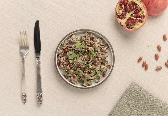 Red kidney beans, walnut paste, onion, garlic, coriander