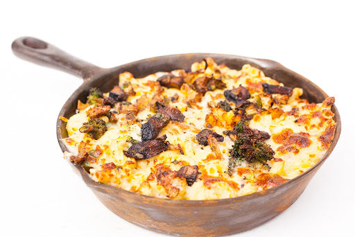 Don't let the "Lite" fool you - this baby is as satisfying as any of the other MACs! Lite Cheddar, Parmesan, roasted cauliflower and portobello mushrooms, roasted garlic, broccoli and scallions.