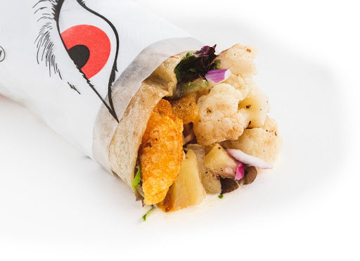 grilled cauliflower wrapped in fennel seed dough spicy pickled pineapple, shallot, bbq potato chips, sage aioli