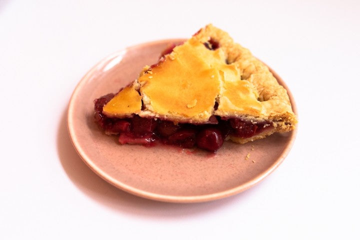 We use Montmorency cherries from upstate New York in our Sour Cherry Pie-- and we don't sugarcoat 'em either. We let their vibrant, tart flavor take center stage. Add a scoop of ice cream to this bright red cherry pie and it will really knock your socks off!