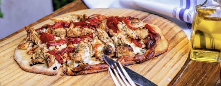 Mediterranean grilled chicken, mozzarella, roasted red pepper with feta and balsamic glaze. Our pizzas are handmade daily using the freshest ingredients to create our famous gluten-free crust.