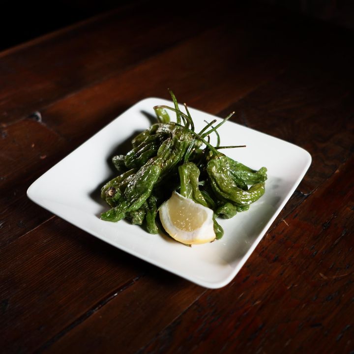 Lightly fried shishito pepper topped with sea salt. WARNING: Depending on the season the spiciness of shishito peppers can very from very mild to VERY SPICY!