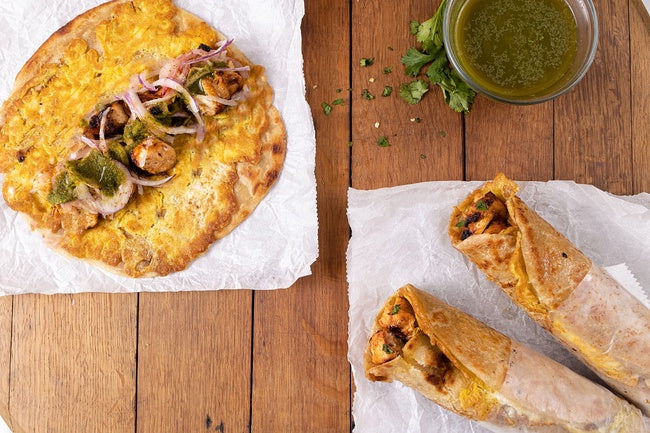 Flatbread Layered with Freshly Beaten Egg & Chicken Tikka Filling