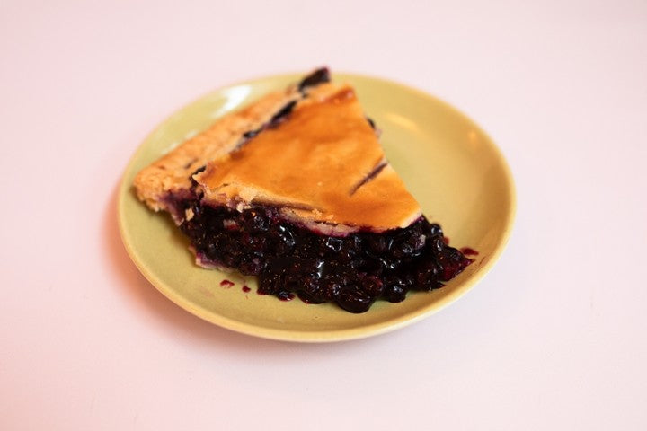 A fresh and delicious pie made with scrumptious organic wild blueberries from Josh Pond, Maine. Only a quarter cup of sugar in a whole pie to let the natural sweetness and flavor of the blueberries shine through.