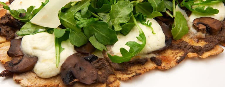 Mushroom puree, truffled ricotta, seasonal greens, shaved parmigiano. Our pizzas are handmade daily using the freshest ingredients to create our famous gluten-free crust.