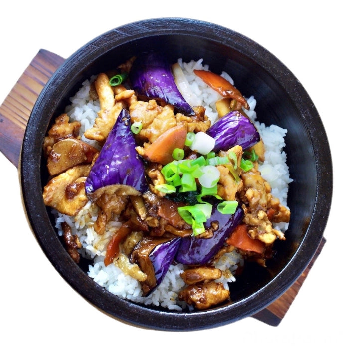 Eggplant Chicken and Salted Fish Stone Pot Rice Bowl